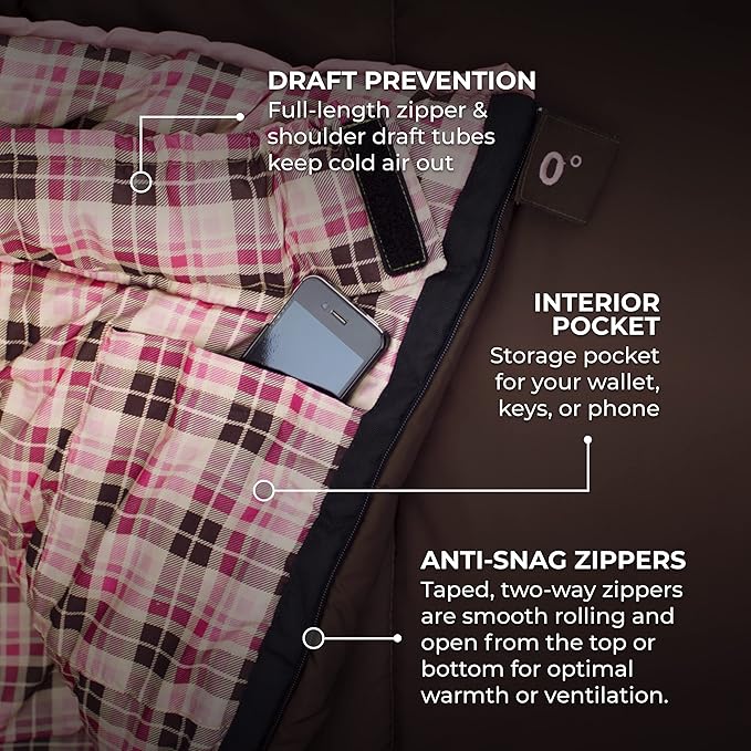 - SLEEP COMFORTABLY: You'll forget you're camping with these comfortable sleeping bags! With a soft poly-flannel lining and plenty of room to spread out. The half-circle mummy-style hood keeps you warm and your pillow clean