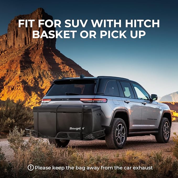- Expandable Design: BougeRV hitch cargo carrier bag is made with rainproof 1000D polyester material with the dimensions of 48" long x 20" wide x 22" high with a maximum of 12 cubic feet volume capacity. Can be easily folded for compact storage