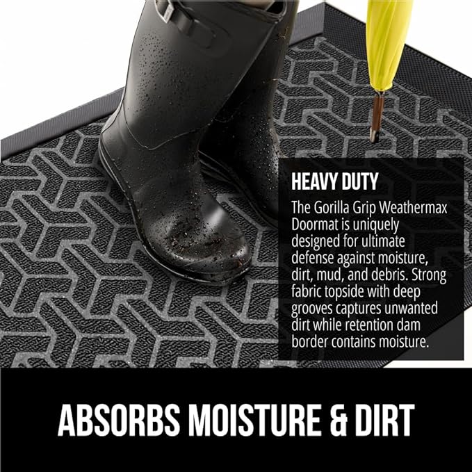 - THE ORIGINAL WEATHERMAX ALL SEASON DOORMAT: Gorilla Grip's Original WeatherMax doormat is built tough with a heavy duty, yet soft and flexible construction; deep grooves, beveled rubber border and retention dam help capture dirt, debris and moisture
