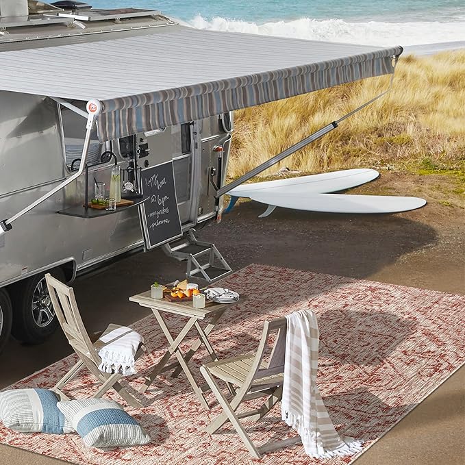 - INDOOR/OUTDOOR DURABILITY: Give your patio, deck or porch an instant makeover with an indoor/outdoor rug; Low-pile synthetic rug fibers are durable for high-traffic spaces like the kitchen, mud room or entry; Perfect for families with kids