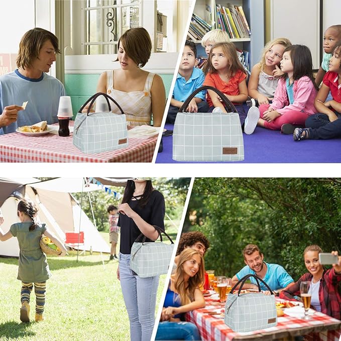 - 【LARGE CAPACITY】Dimensions of 10.6 L x 6.3 W x 7.1 H inches; spacious enough to easily accommodate a lunch container, beverage cans, sandwich, fruit, and snacks. A lightweight and classic lunch bag designed for convenient meal storage on the go.