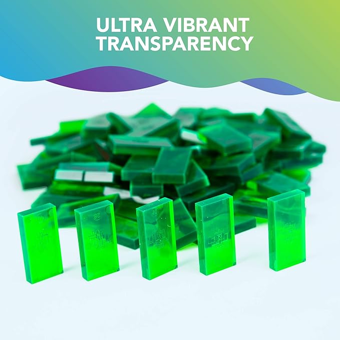 Bulk Dominoes Plastic Bulk 100pcs – Building and Stacking and Chain Reaction Toppling STEAM Toy Blocks for Kids (Clear Emerald)