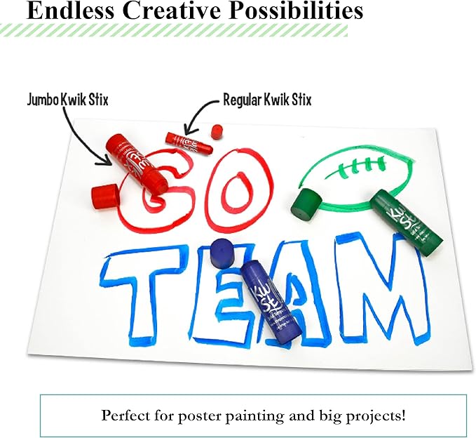 - Perfect for Big Projects: Jumbo Kwik Stix are perfect for poster painting and big projects. This set includes 6 jumbo metallic colors that allow for endless creative possibilities.
