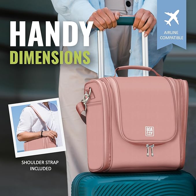 - If you want a large makeup bag, a cosmetic, or an accessories organizer, Boacay toiletry bag is for you. It is multifunctional, has metal zipper pulls, and it’s made of only high-quality materials.