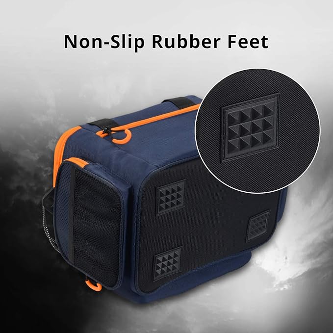 - Tough and Water Resistant – Calamus fishing tackle bags are made from tough, 600D rip-stop PE material. Durable composite clips to provide exceptional long-term performance and reliability. The inner PVC layer provides protection to ensure your fishing tackle is protected from the elements even as a saltwater tackle bag. A durable 600D PE PVC coated bottom repels moisture and the tacky rubber feet grip any surface so the bag doesn’t slide around inside your boat.