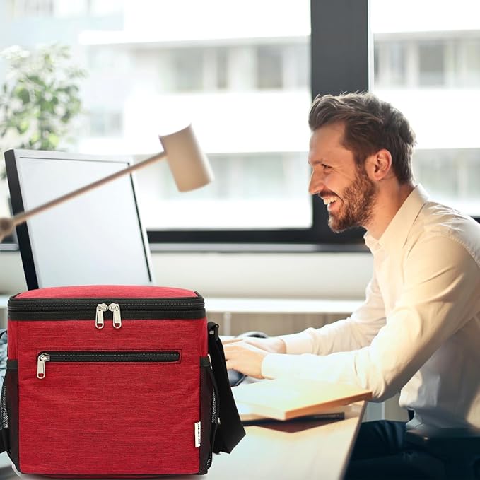 Insulated Lunch Bag for Adult/Women/Men, Reusable Large Lunch Box Cooler Soft Leakproof Tote, Thermal Meal Prep Lunch Pail with Adjustable Shoulder Strap for Picnic/School/Travel/Office,Red