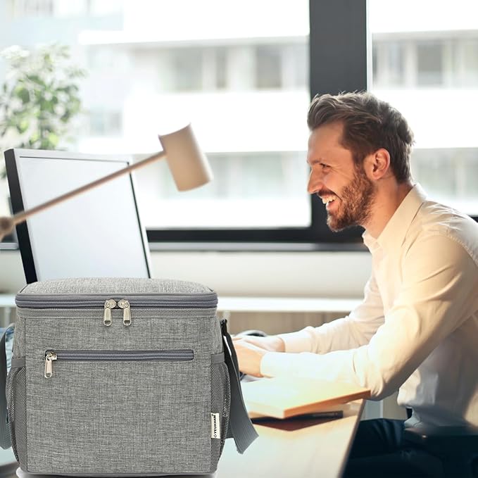 Insulated Lunch Bag for Adult/Women/Men, Reusable Large Lunch Box Cooler Soft Leakproof Tote, Thermal Meal Prep Lunch Pail with Adjustable Shoulder Strap for Picnic/School/Travel/Office,Grey