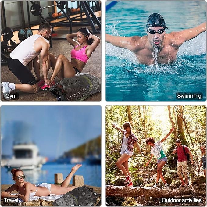 • FOLDABLE ZIPPER POCKECT & EASY TO CARRY: Extra zipper pockets of our mesh drawstring backpack make it easy for you to pack phones, keys. Besides,you can easily fold our mesh beach bag into the zipper front bag, which takes up hardly any space that can easily fit in a purse, pocket.You will always have a mesh swim bag with you whether you go to gym or beach trip.Our mesh drawstring bag is perfect for gym bag,swim bag,basketball bag,soccer bag,sports bag,beach gear bag.