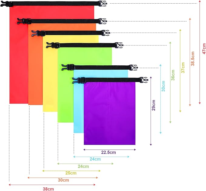- Ample amount: the package includes 6 pieces of mixed color waterproof dry bags, including the capacity of 15 L,8 L, 5 L, 4 L, 3 L and 2 L, 2 pieces of long adjustable shoulder straps (15 L and 8 L may need to use), different sizes and colors are prepared to satisfy your various needs