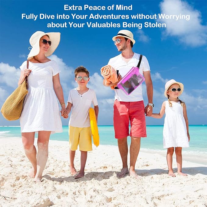 AiRunTech Waterproof Pouch with Waist Strap (2 Pack) | Beach Accessories Best Way to Keep Your Phone and Valuables Safe and Dry | Perfect for Boating Swimming Snorkeling Kayaking Beach Pool Water Park