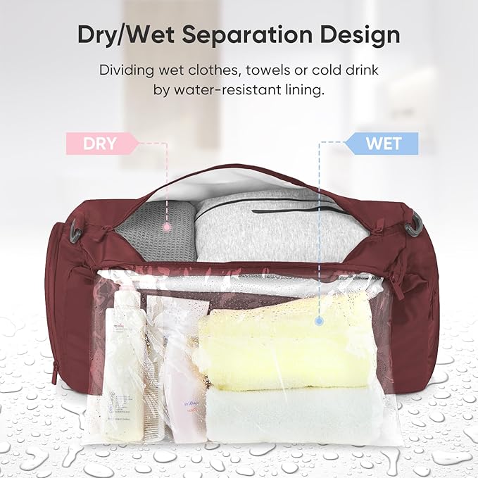 - [COMPARTMENT FOR SHOE, DRY & WET CLOTHES] Separate compartment to store your sneakers and shoes, swimsuits, toiletries, and wet towels. Additional storage pockets to organize your items and gym accessories.