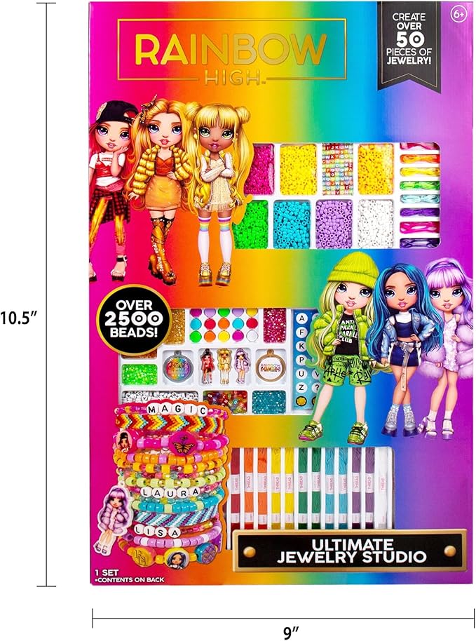 Rainbow High Ultimate Jewelry Studio, 2500+ Beads, Create 50+ Pieces of Jewelry, Toys, Great Bead Kit for Sleepovers, Girls Night, Weekend, DIY Alphabet Bracelets for Kids Ages 6, 7, 8, 9