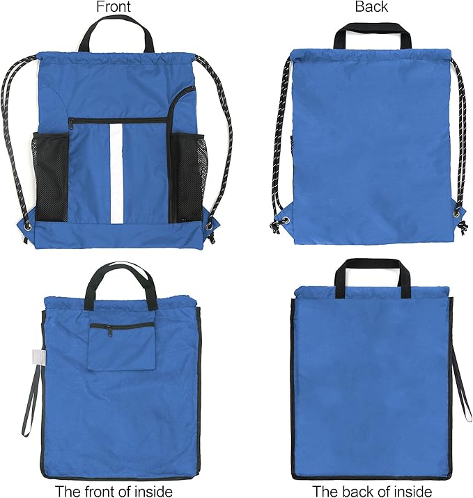 - Handle Design and Reflective Strip:Our draw string back pack bag has 2 handy carry handles allow for hand holding or hang it on the wall or door, very convenient for your use. Also the extra verticle reflective strips can enhance the high visibility to ensure your safe while in dark or dusk. Greatly reduce your chance of being hit at night.