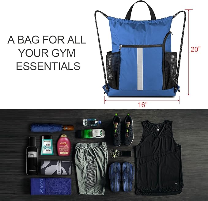 - Large Space: The main space of cinch backpack bag measures 16" x 19.5" which is big enough to hold a basketball, gym clothing, swim gear, sport towel and daily supplies. Perfect for gym, sports, trip, travel, camping, hiking, walking, running and more! It's also a great sports gift for men and women. Men and women can use it as a gym sack bag or a cinch tote bag.