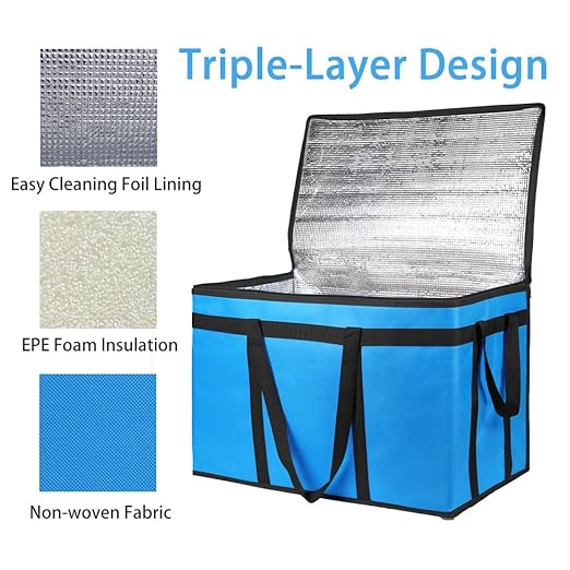 Bodaon 2-Pack Insulated Food Delivery Bag for Hot and Cold Meal, XXX-Large Cooler/Thermal Bags for Doordash/Uber Eats, Grocery Tote Insulation Bag for Catering, Pizza Warmer, Blue