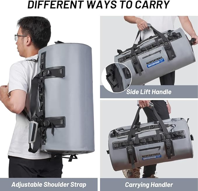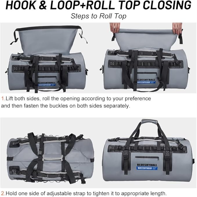 - 【Highly Waterproof】Blueshyhall Outdoor Dry Luggage Bag is made of durable 500D PVC, which is completely waterproof. Rolling it 3/4 times and fixing with the strap to keep all your items ideally dry
