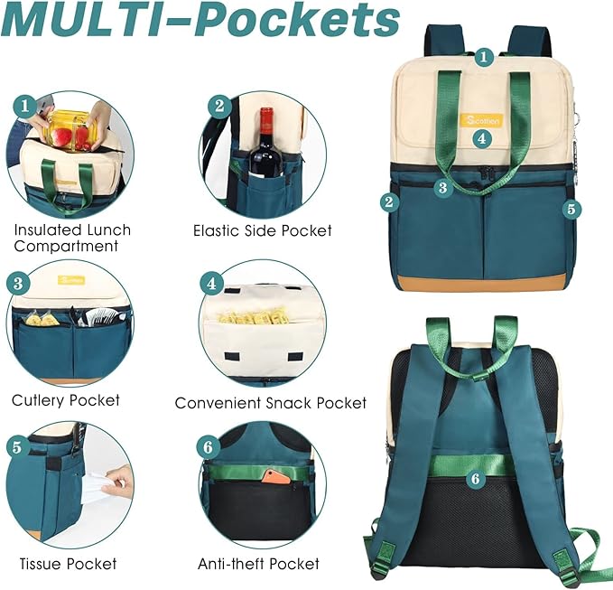 - 🏖️Large Capacity & Multiple Pockets: Measures 16.5 “x 13.8 “x *6.7 “, holds 36 cans of cola.The cooler bookbag comes with 2 front pockets,1 top pocket, 2 side pockets and 1 anti-theft pocket to hold your phone, snacks and cutlery. 2 insulated compartments is big enough to pack beers, tall beverages, drinks, meals, vegetable, etc. Which is perfect for those romantic outings. Plus, we included a 3 in 1 function bottle opener that can open wine and beer, the perfect gift for your drinking buddies.
