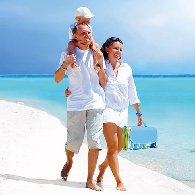 - Picnic Blankets Lightweight : This Large beach blanket is 79*58” size fits comfortably 3-5 seated adults or 2-3 lying adults,Made of 600D Oxford cloth with WATERPROOF bottom and triply stitched sides & joints, won’t rip or tear no matter how hard it is rubbed. perfect for family and friends gathering.Picnic mat waterproof, Picnic mat waterproof, Beach mat sand free waterproof,Sandproof beach blanket,Waterproof festival blanket.