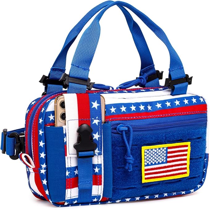 Tactical Molle Admin Pouch of Laser Cut Design,Medical EMT Organizer with Phone Pouch,EDC EMT Pack IFAK Tool Holder with US Patch (Small RedBlueStar-Include Accessories)