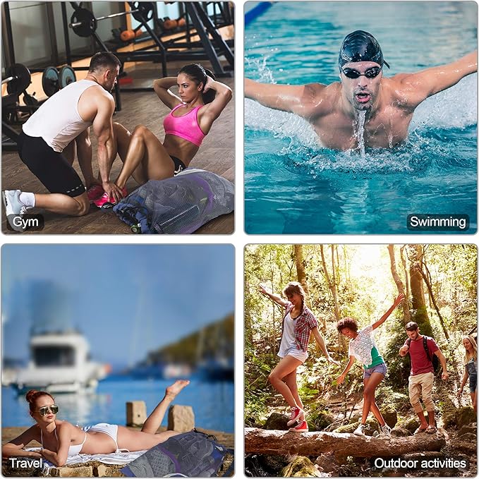 - FOLDABLE ZIPPER POCKECT & EASY TO CARRY: Extra zipper pockets of our mesh drawstring backpack make it easy for you to pack phones, keys. Besides,you can easily fold our mesh beach bag into the zipper front bag, which takes up hardly any space that can easily fit in a purse, pocket.You will always have a mesh swim bag with you whether you go to gym or beach trip.Our mesh drawstring bag is perfect for gym bag,swim bag,basketball bag,soccer bag,sports bag,beach gear bag.