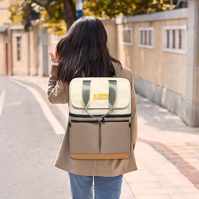 - 🍱Hot & Cold Separation Design: Our cooler backpack with double decker is design for women. A bottom compartment for cold, fresh contents that can also house ice packs, and an upper compartment for warm, dry goods and lunch. We recommend storing hot and cold foods and drinks separately for better results. It is a must-have backpack cooler for women hiking! It can also be used as a breastmilk cooler bag to keep your drinks 🍹 cold and keep your breast bottle 🍼 warm!