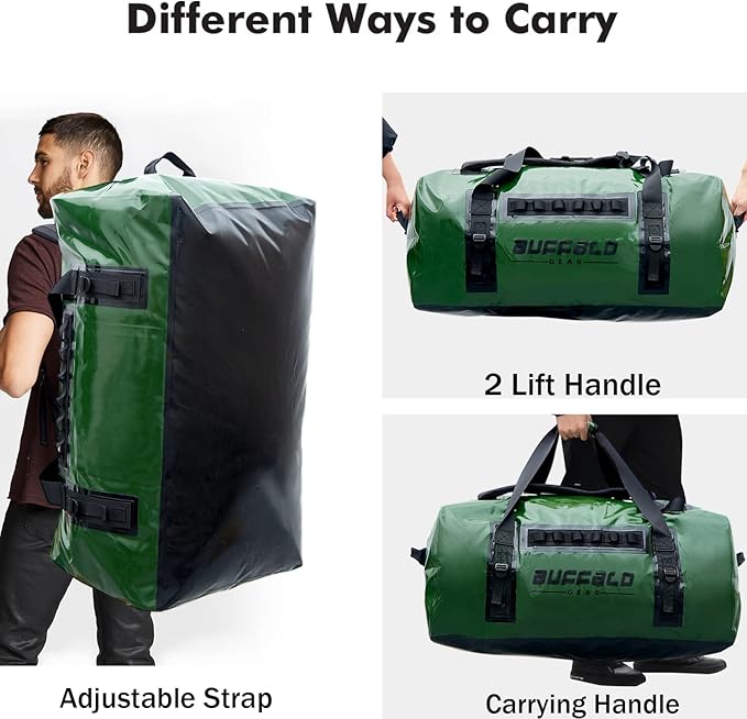Buffalo Gear Waterproof Duffel Bag Waterproof Duffle Bag 120L Large Dry Bag to Keep Your Gear Dry for Travel Hunting Camping Boating Motorcycling