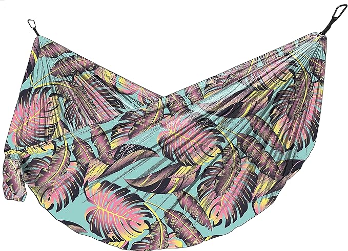Hurley Uno Camping Hammock - 1 Person Portable Hammock for Camping, Heavy Duty Hammock, Parachute Nylon Fabric - Camping Accessories & Gear for Outdoor Activities - Holds Up to 400lbs, Mix, 108 x 54