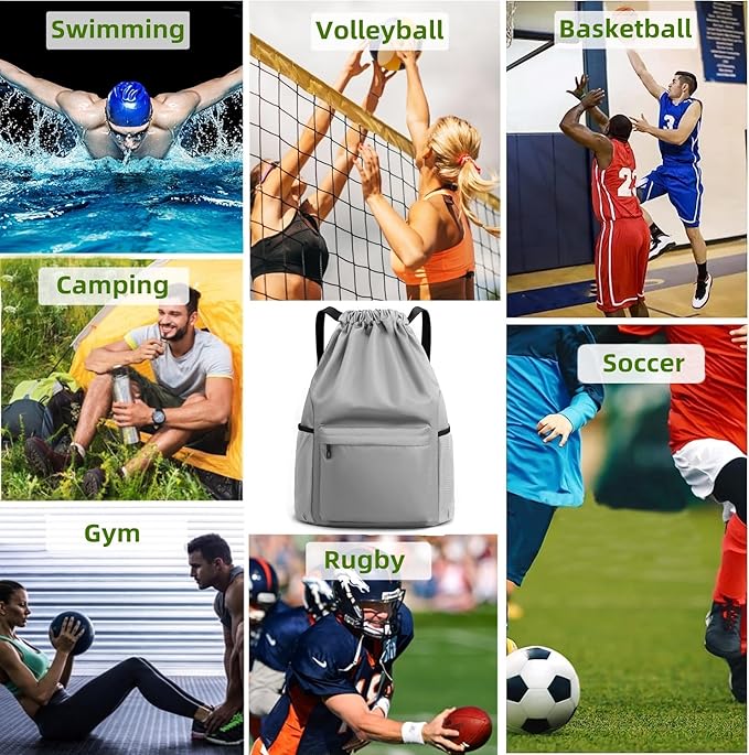 - 【Waterproof Drawstring Backpack】: Our drawstring gym bag is made of high-quality oxford materials which are lightweight and sturdy, water-resistant and strong enough to resist rain, dirt, dust, can withstand the challenges of various outdoor sports. With drawstring design is extremely convenient to use, just pull the drawstrings to open and close.