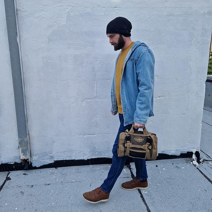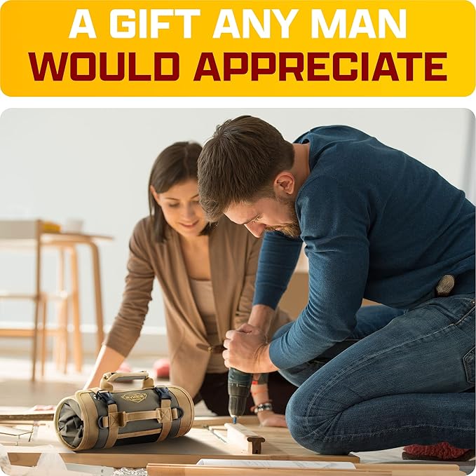 The Ryker Roll Up Tool Bag Organizer Gifts for Dad. Heavy Duty Motorcycle Tool Roll Bag Organizer. Portable Rollup Toolbag w/Detachable Pouches - Tools Bags Mens gifts for him/Mechanic (Khaki+Black)