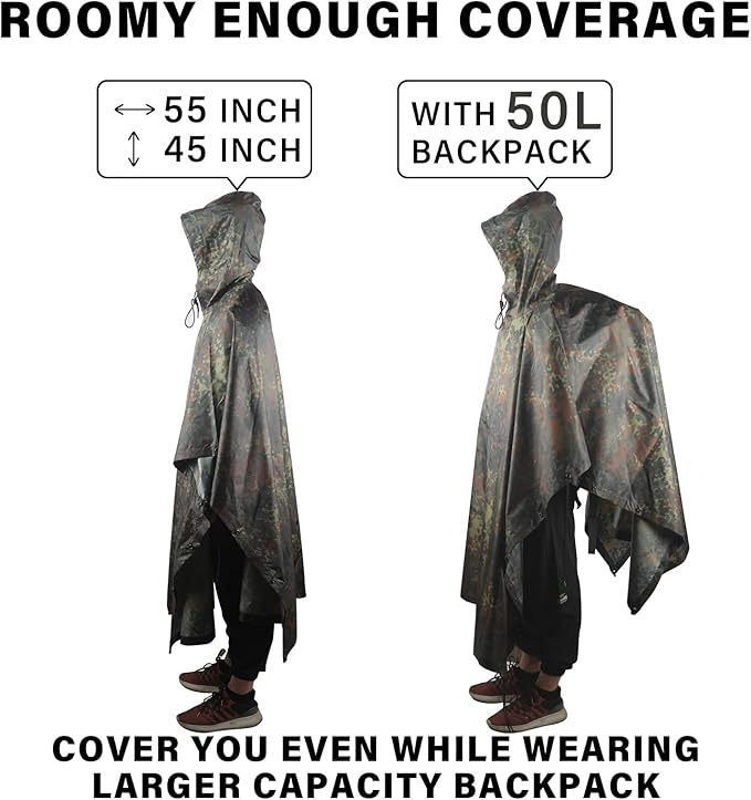 Camo Rain Poncho, Multi Use Waterproof Rain Coat