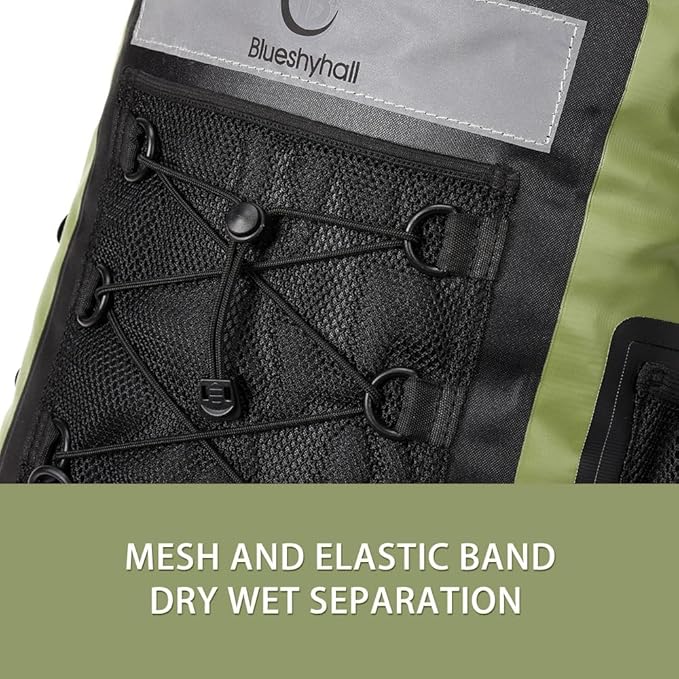 Blueshyhall 30L Waterproof Dry Backpack, Outdoor Travel Roll Top Closure Water Repellent Duffle Storage Sack for Kayaking Rafting Boating Fishing Camping and Beach - Green