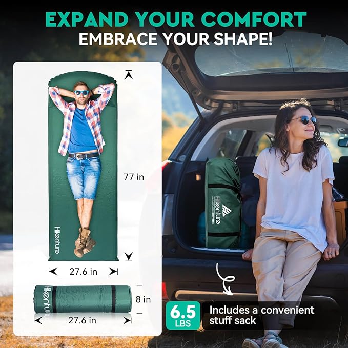 - π£π¨π₯π πππ π£ππ‘π ππ¨π«π¨π₯π¬ - Camping just got a whole lot more comfortable with Hikenture sleeping pad for camping. Boasting a lavish 3-inch thick foam, this foam sleeping pad molds to your body's contours, banishing irksome pressure points and ushering in a new standard of sleeping luxury under the stars. Transform your camping into an unparalleled experience of sublime relaxation.