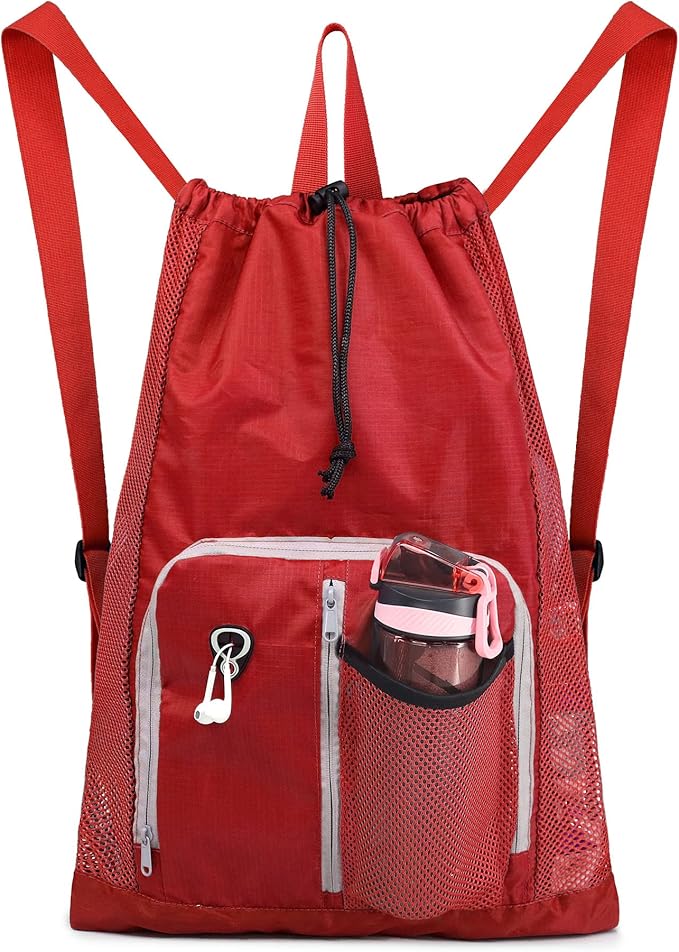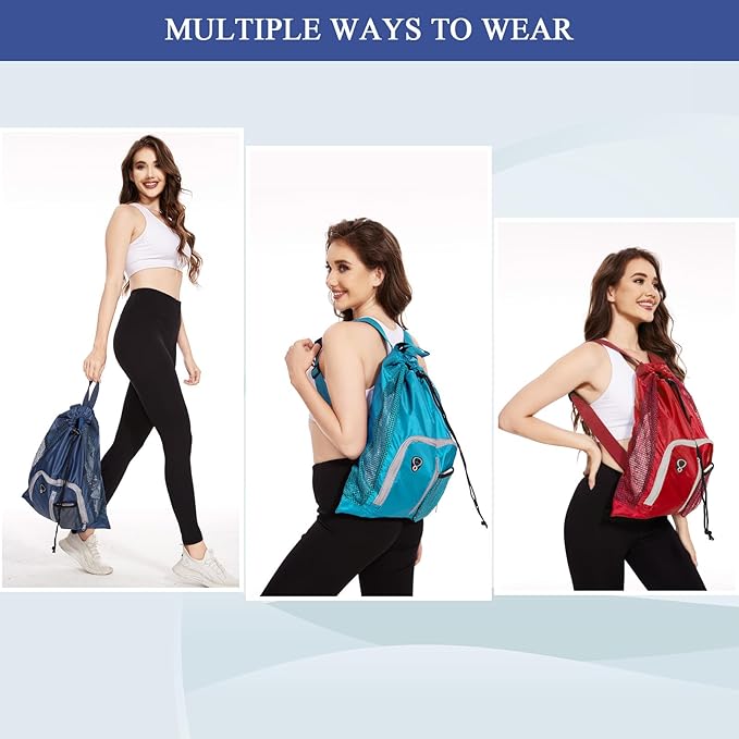 • Breathable & Machine Washable: These draw string back bags are designed with mesh on both sides, which makes the workout bag more breathable. Our swim bags for swimmers can be easily cleaned by the washer, once the beach backpack gets stained, just throw them into the washer, save your time and it dries quickly, it's perfect as travel accessories.