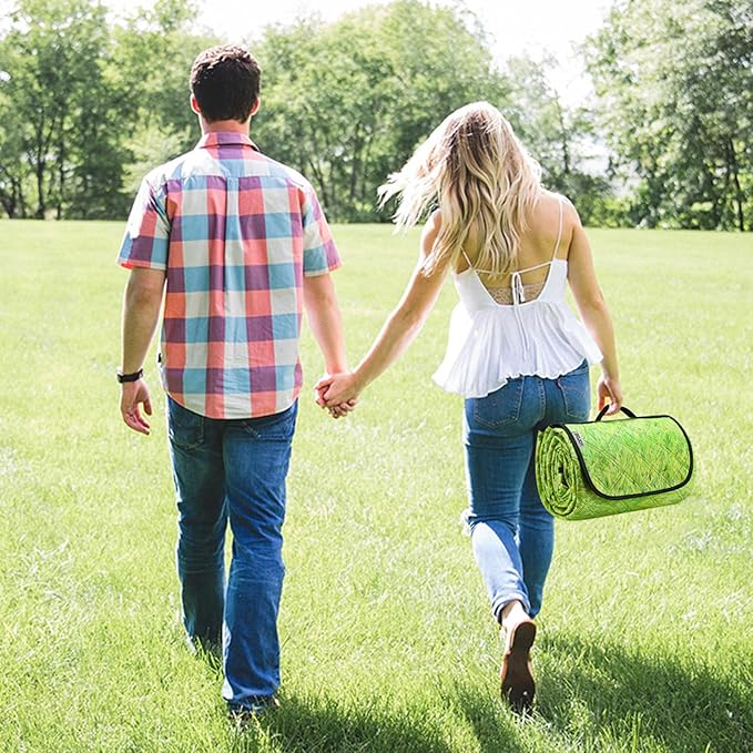- Waterproof picnic blanket : The front of the picnic mat is soft and with it, you can comfortably lie or sit on grass, beach, park, the lakeside, the floor, etc. Back sides waterproof and will keep you dry in wet grass or on the beach, protect you from moisture.