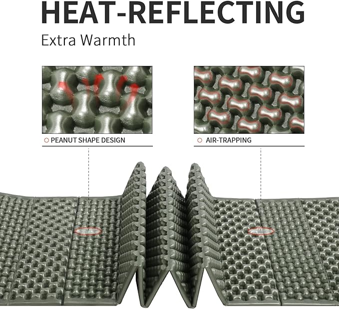 - 【Ultralight & Durability】Ultralight backpackers love foam pads for its lightweight qualities and dependability. Unlike air sleeping pads, foam pads will not deflate giving you a stress release night's sleep at camp.