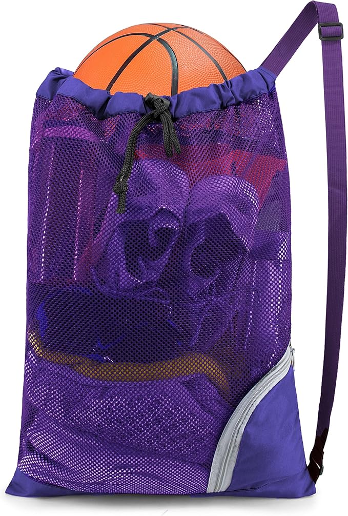 - FOLDABLE ZIPPER POCKECT & EASY TO CARRY: Extra zipper pockets of our mesh drawstring backpack make it easy for you to pack phones, keys. Besides, you can easily fold our mesh beach bag into the zipper front bag, which takes up hardly any space that can easily fit in a purse, pocket.You will always have a mesh swim bag with you whether you go to gym or beach trip.Our mesh drawstring bag is perfect for gym bag,swim bag,basketball bag,soccer bag,sports bag,beach gear bag.