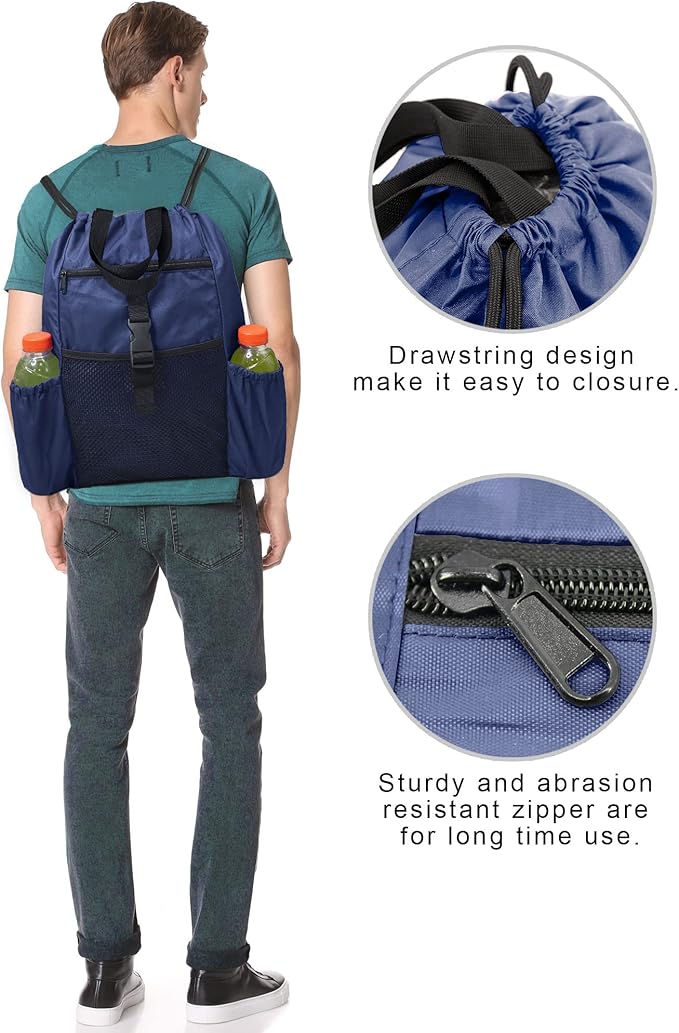 - ENHANCED DURABILITY : These drawstring backpack is made of high density polyester fabric and custom quality mesh, which are super sturdy and withstands daily wear and tear. Drawstring backpack maintains its good performance when subjected to everyday wear-and-tear. These gym bag for women is double stitches for all seams, metal eyelets for reinforced corners. Thick strong string cords, reinforce high density PP webbing, custom zipper for long time use.