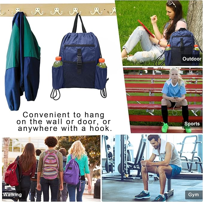 - HANDLE DESIGN & COMFORTABLE STRAPS: These gym backpack has 2 handy carry handles allow for hand holding or hang it on the wall or door. And adjustable drawstrings can fit both men and women. Backpack design can free up your hands, and strong thick straps prevents from digging into your shoulders and help reduce your shoulder burden. Comfortable to carry and very suitable for men and women.