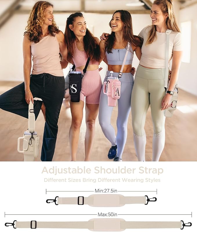 - 【Perfect Gift for Stanley Fans】Featuring an eye-catching initial letter design on the front, A-Z 26 Letters available, and the water bottle holder for stanley is bollus with cute straw cover & carabiner, keeps the straw and cup hygienic, let you drink with confidence anytime. What's more, the water bottle holder for stanley 40 oz tumbler with handle is packaged in a beautiful package, which make it an perfect gift for Stanley fans, birthday, Valentine's Day, Christmas, Mother's Day, and more