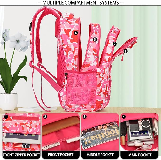 - Durable and Comfortable Camo Backpack:Dimensions: 20" x 13" x 6”,The backpack for boys made from 900Dpvc oxford, heavy duty, thick, waterproof (except the zipper chain) and dry-fast; High quality material ensures a long service life in everyday uses. Ventilated mesh cushion shoulder straps and back,breathable and comfortable