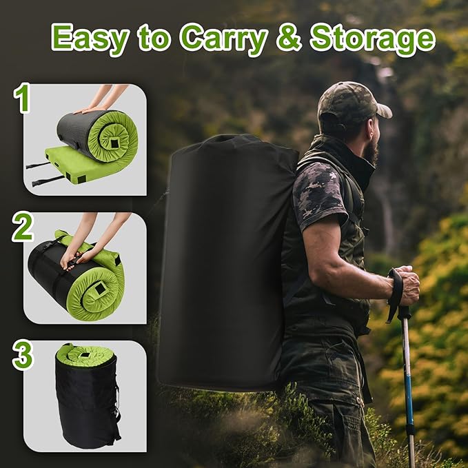 - 🏕️【Ultra soft & Luxury Comfort】The memory foam sleeping pad adopts a double-layer design, including gel memory foam and 30D high-density foam. High density foam can effectively support the weight as the bottom, and gel memory foam can automatically adapt to the shape of the body, bringing a soft and comfortable feeling.