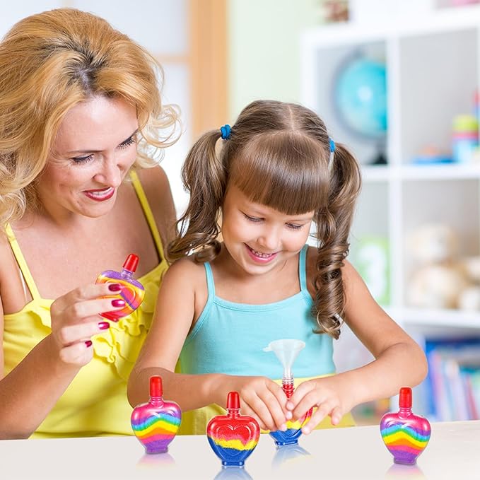 - Innovative Design: the heart shape of our sand art bottle necklaces makes them stand out; The clear plastic reveals the layers of colored art sand inside, transforming each necklace into a stylish piece of art; These sand art bottles, meticulously crafted using durable plastic material for longevity; Each sand art kit offers an immersive experience for girls and boys and appeals to their creativity and imagination