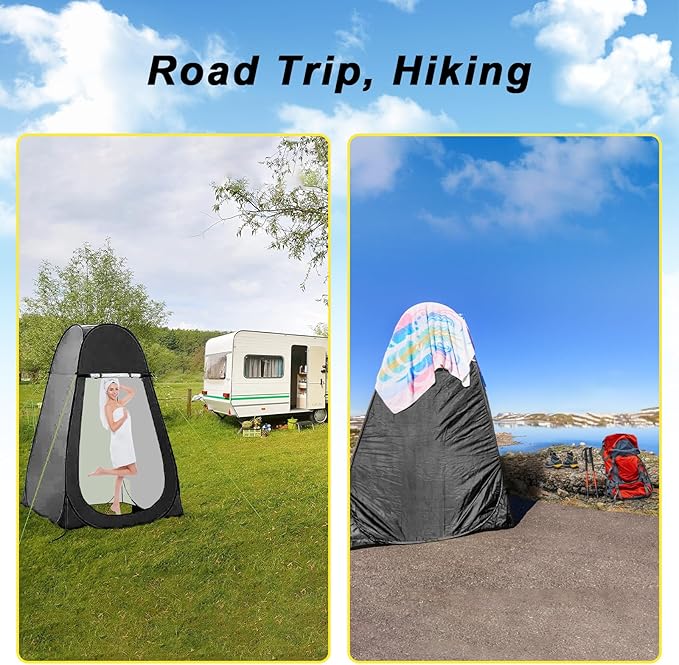 Portable Camping Privacy Tent, Outdoor Shower Tent Kit with 5 Gallon Shower Bag-(Nozzle Upgraded)