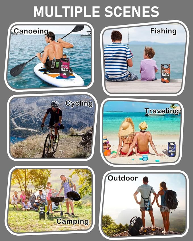 - Great Matching for Versatile Use: The 2L roll top backpack sack is very useful for water activities, including swimming, kayaking, beach trips, rafting, boating, hiking, camping, and fishing. Perfect for both wet and dry storage needs.
