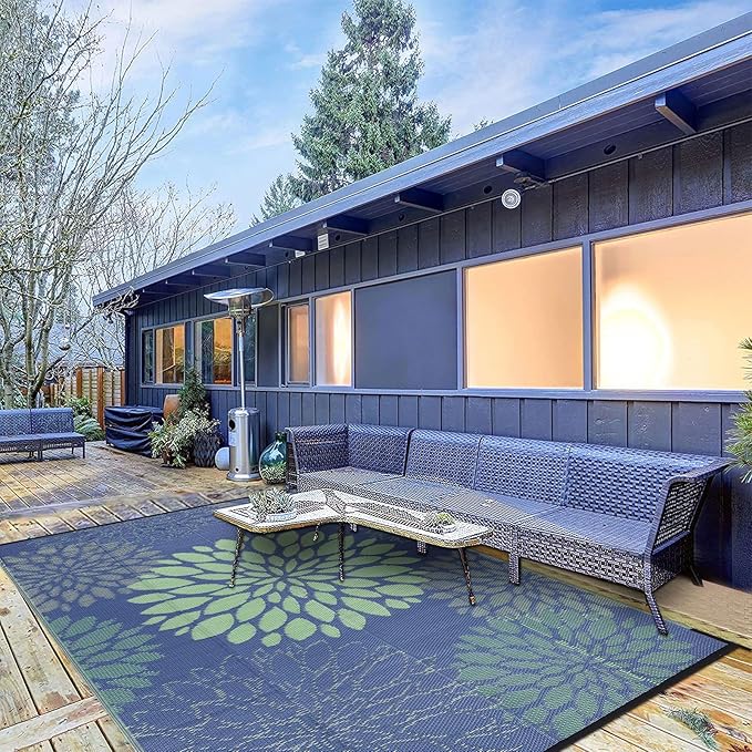 - Easy To Clean Outdoor Rug: This outdoor porch rug is waterproof, very easy to clean, simply rinse with a garden outdoor hose or wipe with wet cloth. And the breathable material allows the RV Camping mat to air dry in minutes.