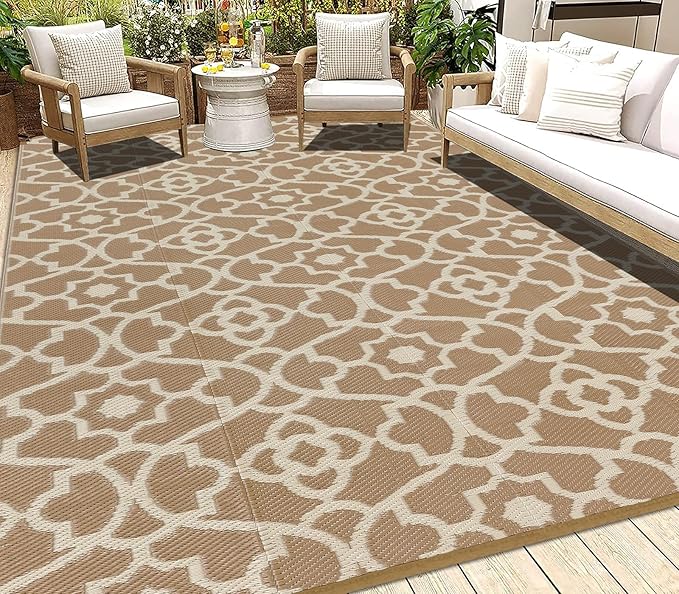 • Versatile Outdoor Carpet: The indoor outdoor plastic rugs have multiple choice in different colors(4'x6',5'x8',6'x9',8'x10',9'x12',9'x18',8'round), is ideal for a variety of indoor outdoor activities,like patio mat, deck rug, garden rug, beach mat, picnic mat, BBQ party mat, rv camping rug,pool rug,outdoor doormat,garage rug,front door mat,allowing you to have plenty of imaginable space for more fun.