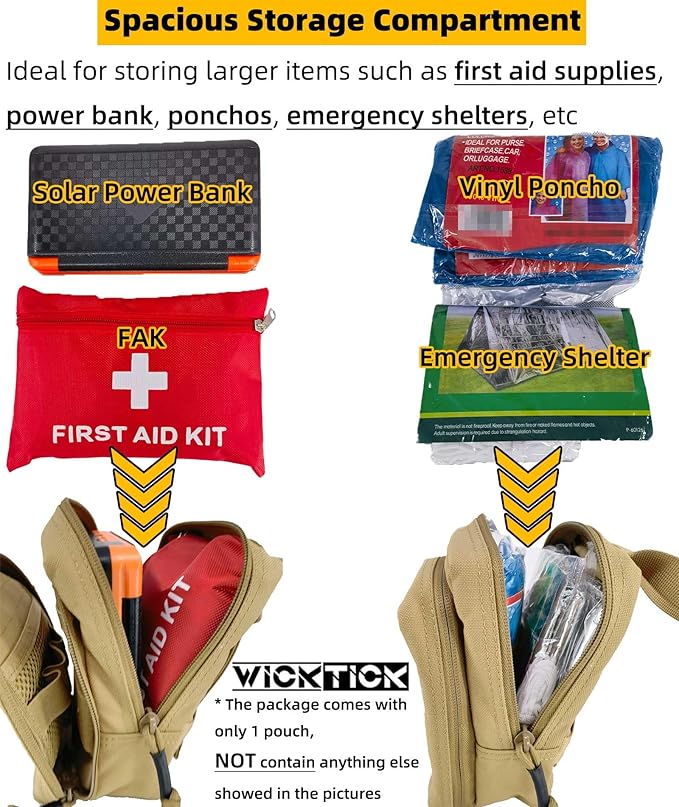 - This tactical EDC tool pouch features 2 distinct compartments: 1. **Multi-Slot Tool Organizer**: Designed for organizing small tools and accessories. 2. **Large Capacity Main Compartment**: Ideal for storing larger items such as first aid supplies, ponchos, emergency shelters, or other essential gear.