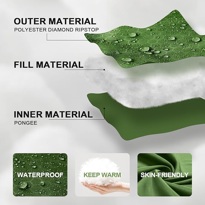 - 【SUITABLE FOR 3-4 SEASONS】Rated for 50°F-70°F with 30°F limit, this ultralight sleeping bag adapts to spring, summer, fall, and cool weather,or as an emergency blanket during winter vehicle breakdowns. High-quality and durable polyester ripstop fabric, stands up to years of use
