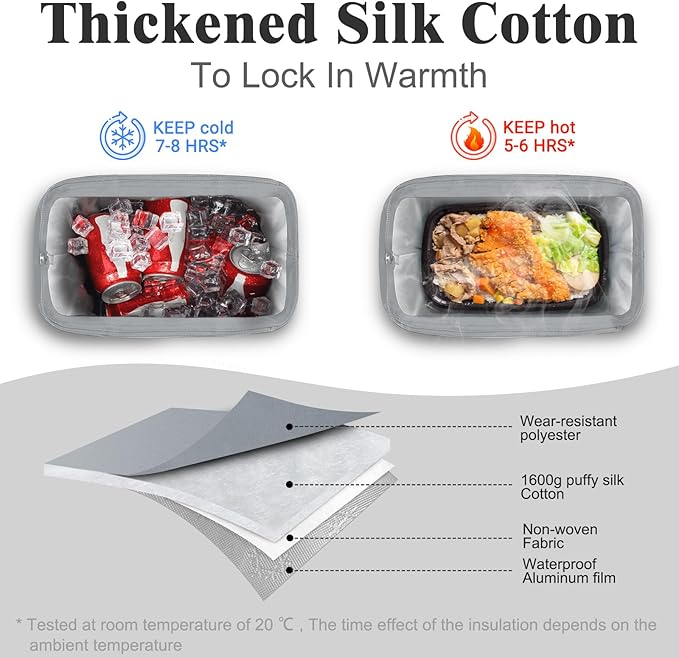 - Thickened Sturdy Lunch Tote: Insulated lunch tote features a thickened anti-collision lining, preventing food from being bumped or spilled. Its aluminum lining, made with advanced voltage technology, ensures leak-proofing, Sturdy, and easy maintenance for daily use