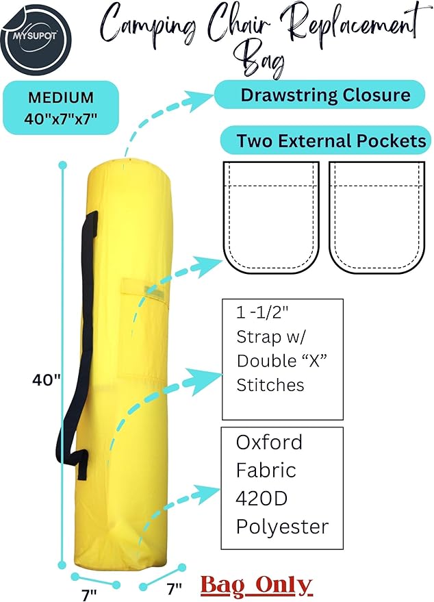 Replacement Bag for Folding Camping Chair, Portable Camp Chair, Hammock, Yoga Mat, Umbrella, Tents, Tripods, Fishing Poles - 420D Oxford Polyester Fabric